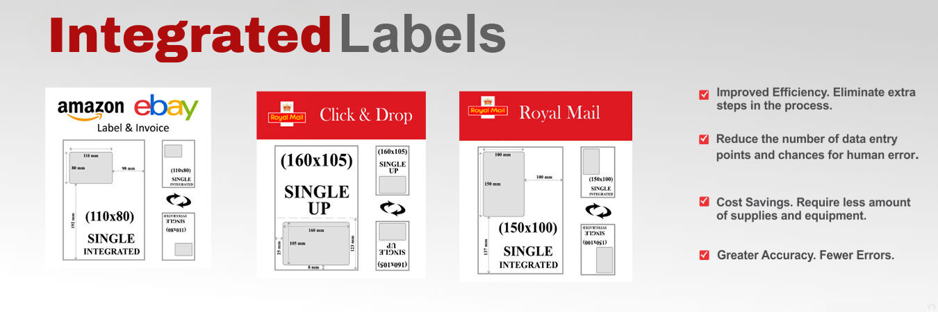 Integrated Labels (K equivalent) 110MM X 80MM For Ebay/Amazon - Pack of 100